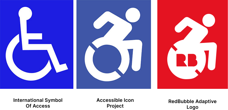 The Redbubble Adaptive logo draws inspiration from the Accessible Icon Project, a design activism effort to promote inclusivity. Using this public domain symbol, Redbubble.com reinforces its commitment to creating an accessible and respectful shopping experience for people of all needs and abilities.